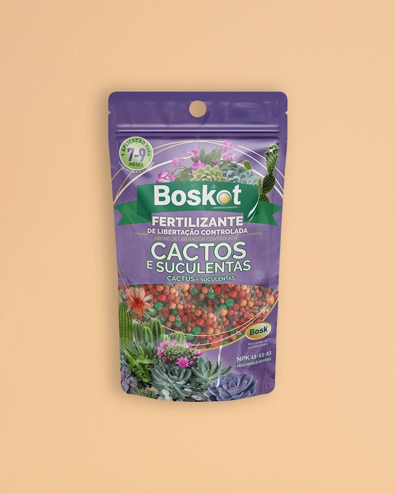 O adubo granulado Boskot para cactos e suculentas é especialmente formulado para atender às necessidades destas plantas únicas. A sua fórmula proporciona um crescimento saudável e equilibrado, o nitrogênio impulsiona o desenvolvimento das plantas, o fósforo fortalece a sua estrutura e o potássio estimula a floração e aumenta a resistência a doenças.