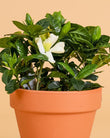 A Gardenia jasminoides, também conhecida como Jasmim do Cabo, é uma planta encantadora muito apreciada pela beleza única e aroma irresistível das suas flores brancas e cerosas.