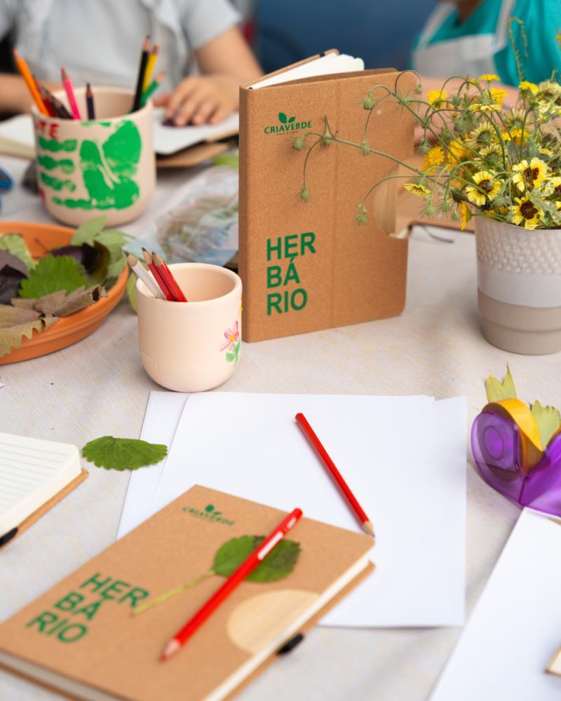 Herbário Criaverde, um caderno de linhas de tamanho A5, ideal para desenhar, escrever ou criar o seu primeiro herbário.