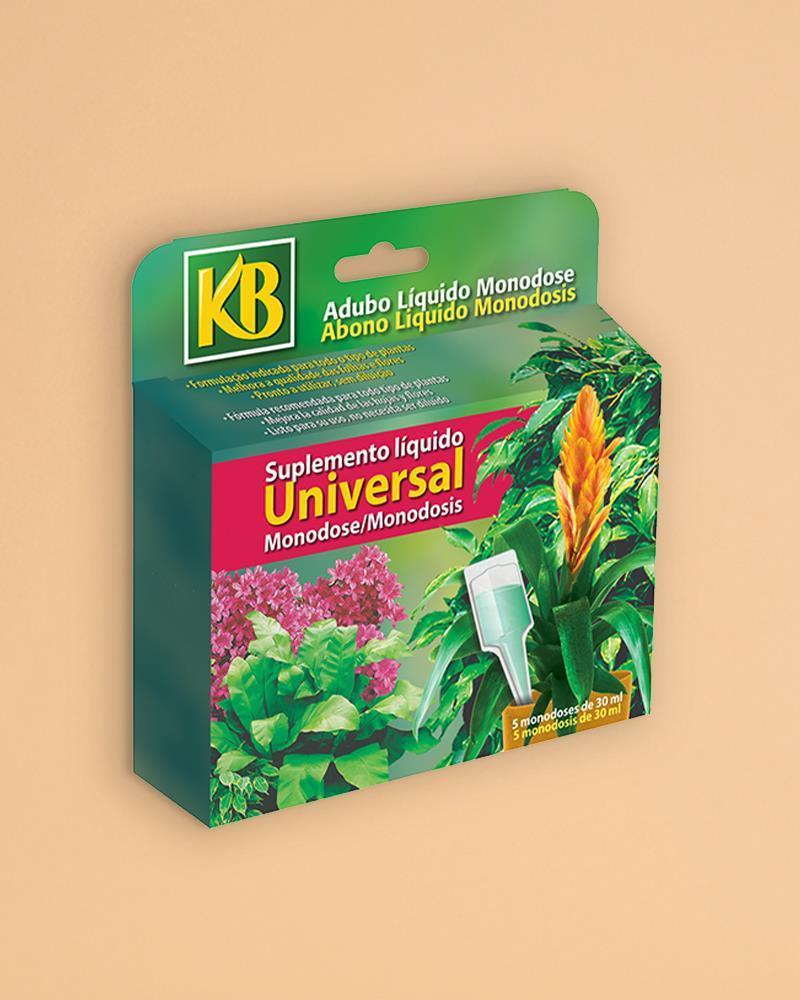 O suplemento líquido universal Monodose KB é a solução fertilizante NKP pronta a utilizar, especialmente equilibrado em macro e micro elementos, melhorando a qualidade das folhas e flores.